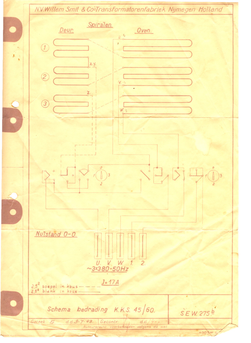 Schema's van de KKS 45/45 oven die men kocht in 1946. De oorlogstijd zorgde natuurlijk voor een enorme vertraging aangezien men al in 1943 documentatie had opgevraagd van deze oven.