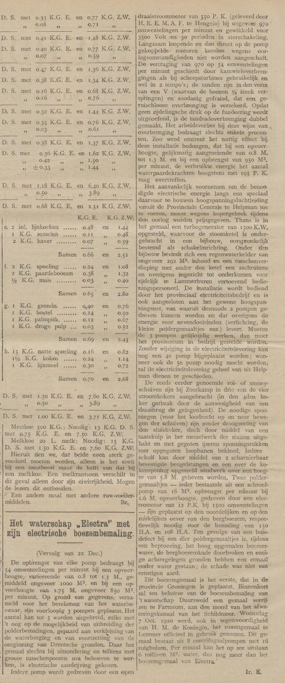 Technische informatie over het gemaal Electra , bron de Boerderij 1920.