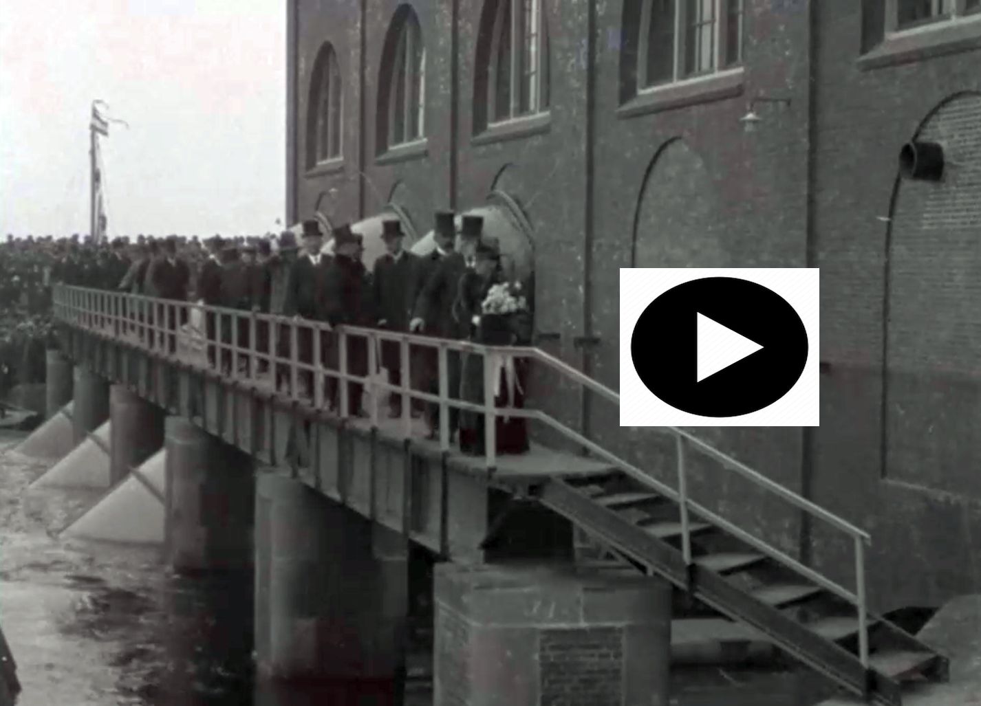 Koningin Wilhelmina, in gezelschap van Prins Hendrik, verricht de opening van het gemaal Electra te Lammerburen, 1920. Klik op de play button voor een uniek filmfragment van de opening van gemaal Electra in 1920 zonder geluid. Bron: Beeld en Geluid